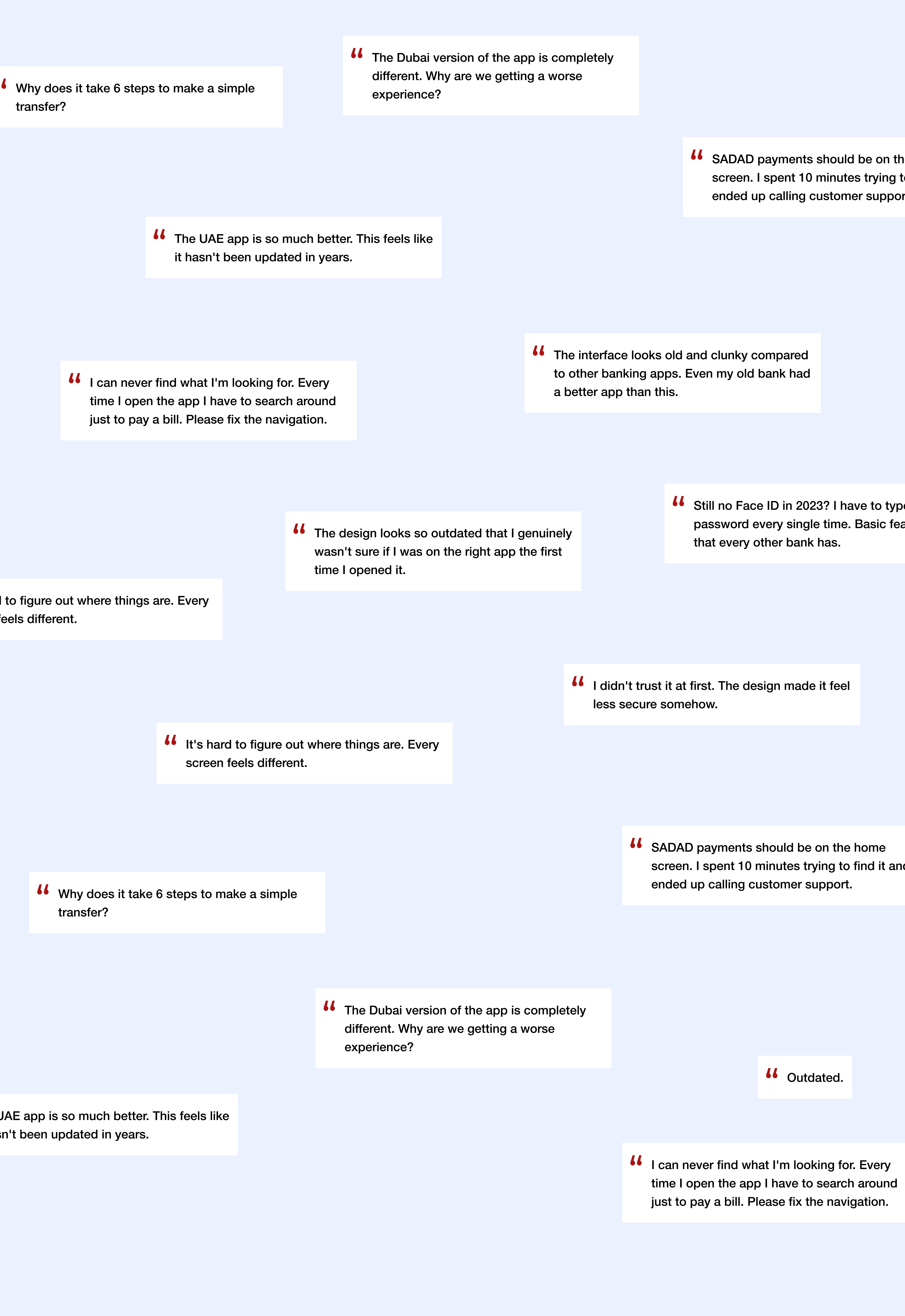 The Saudi Arabian app had been the primary banking interface for KSA customers for years, but it was built on an ageing technical framework that had accumulated features incrementally over time. App Store reviews confirmed what users were already experiencing, that the product was starting to fall behind.