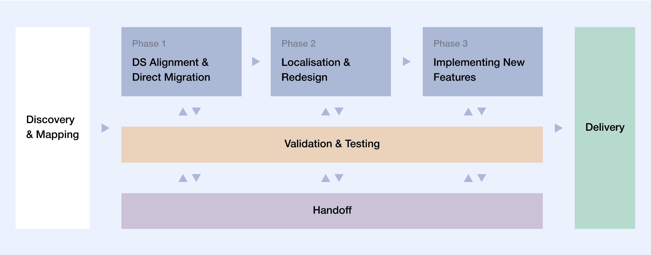 With the largest portion of the work scoped and sequenced, we were able to move quickly on these straightforward areas while planning the more complex localisation and redesign work in parallel.